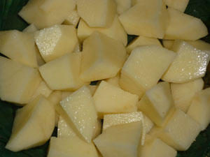 Картофель очистить и нарезать кубиком.