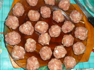 и мелконарезанную луковицу. Тщательно вымешать и отбить массу об стол. Сформировать фрикадельки. У меня получилось 20 штучек.