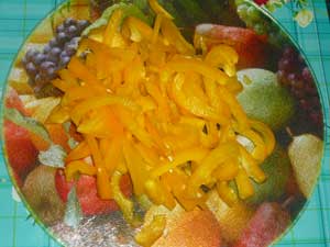 Теперь очищаем все овощи для лагмана, такие как морковь, редьку, лук, картофель. Промываем. У перца удаляем семена и плодоножку.