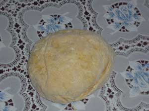 Добавляем муку. Если сделать тесто мягче, то раскатывать его будет легче. Но не исключено, что оно может слипнуться в процессе нарезки. Если же замесить тесто, как на лапшу, то резать его будет легко, к тому же оно не слипнется, но вот раскатывать будет тяжеловато. Лично мне приглянулся второй вариант.