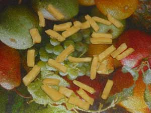 Можно нарезать тесто и кубиком. Сначала используем лапшерезку. Затем эту лапшу режем ножницами над сковородой с кипящим маслом. Вкус блюда от нарезки не изменится. При жарении чак-чак увеличивается в объеме, как минимум, в 2 раза, поэтому имеет смысл нарезать тесто как можно мельче.