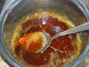 После полного его растворения- засыпаем сахар.