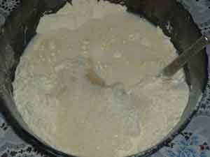 Маргарин должен быть размягченный. Добавляем молоко, муку, соль, соду.
