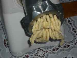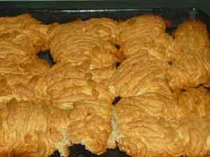 Старайтесь закладывать тесто небольшими порциями в мясорубку, чтобы на выходе будущие печеньки были небольшими. Так они получаться после выпечки более хрустящими. Выпекаем в предварительно разогретой духовке при температуре 180- 200 до аппетитного румяного цвета.