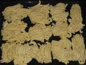 Решетка может быть самой крупной, какая только имеется в Вашем арсенале. Полученное на выходе тесто укладываем на смазанный маслом противень или на пергамент.