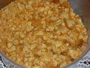 Подождем, пока наши печеньки остынут и разминаем их толкушкой или руками до крошки. Можете сильно не мельчить, оставляя кусочки разной фракции.