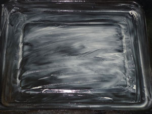 Противень или пергаментную бумагу смазываем равномерным тонким слоем сливочным маслом. Не следует смазывать очень обильно, так как масло потом закипит, и в тесте образуются ненужные дырки.