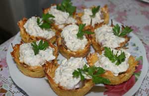 Картофельные корзиночки с салатом и селедкой.