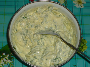 Добавляем все это в майонез и перемешиваем. Солить не нужно.