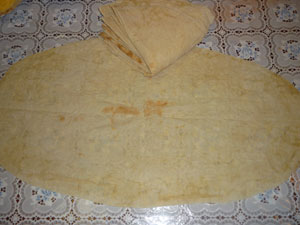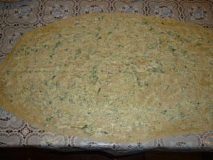 закрываем вторым лавашом. Смазываем снова майонезом с зеленью, посыпаем этот слой сыром. Распределяем его по поверхности равномерным слоем.