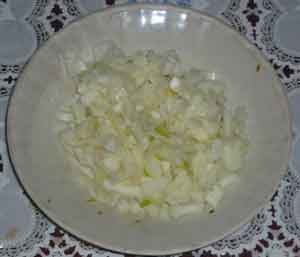Лук очищаем и нарезаем мелким кубиком.