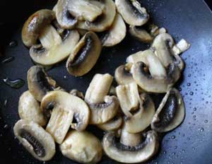 Грибы необходимо вымыть, мелко нарезаем и обжариваем грибы на сковородке, желательно на растительном масле.