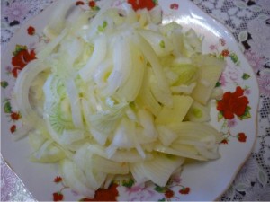 Лук и морковь очищаем, нарезаем лук соломкой, морковь натираем на терке.