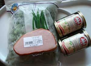 Подготовим наши продукты: фасоль у нас заморожена, поэтому ее нужно оставить на столе, пока она немножко не подтает. Мясо у нас- обычная свиная копченая вырезка. А шампиньоны мы взяли консервированные, они на много вкуснее в данном салате. Кстати, этот салатик можно готовить даже на праздник- небольшие затраты, а вкус отменный.