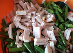 Если наша фасоль не нарезана, то ее нужно нарезать, а размер у нее должен быть примерно три сантиметра в длину.