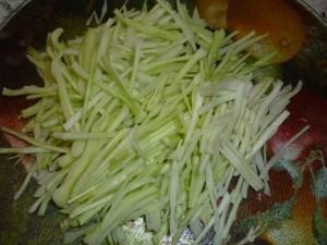Капусту режем тонкой соломкой.