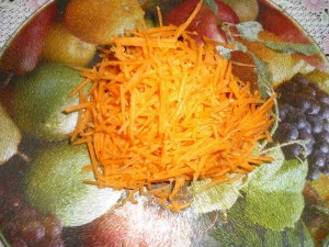 Морковь очищаем, натираем на той же терке, что и свеклу.