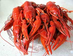 Раков у нас не достать, но вот с креветками такой салат можно и приготовить.