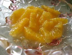 Мякоть апельсина нужно отделить от косточек и пленки, порезать на более мелкие кусочки и выложить в салатницу.