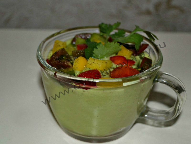 Главное в данном блюде то, что авокадо должен быть полностью спелым. Это очень важно.