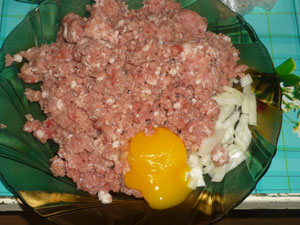 Мякоть свинины или говядины пропустить через мясорубку, посолить, поперчить, добавить яйцо