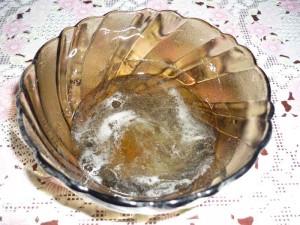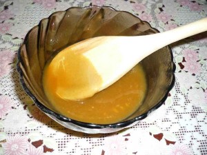 Теперь растопим немного мед (можно до жидкого состояния и не доводить), удобнее всего это делать в микроволновой печи. Можно растопить и на водяной бане.