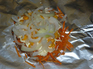 Заворачиваем в фольгу, укладываем все отбивные на противень.