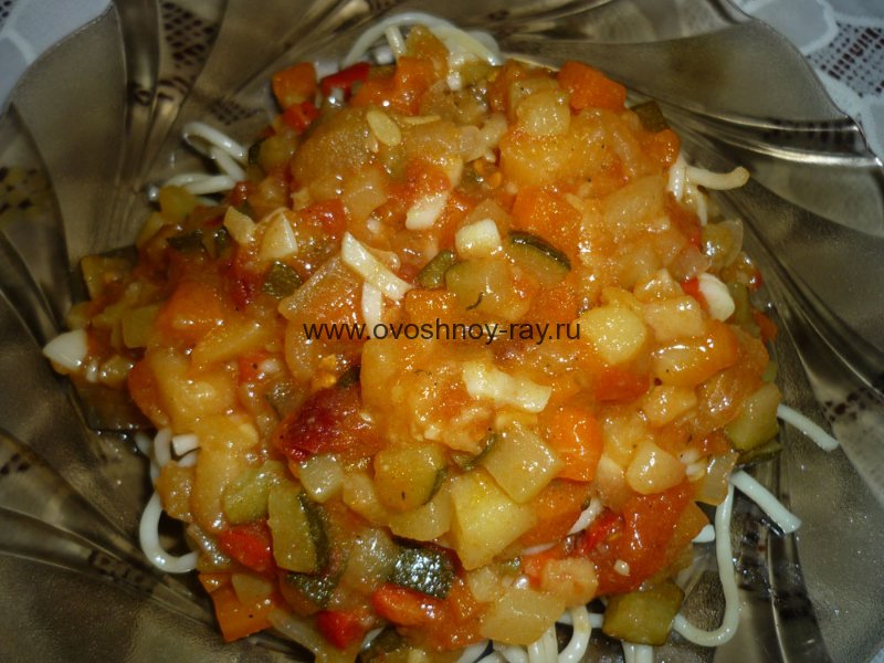 Мы же предлагаем сочетать овощное рагу. Эту подливку со спагетти.