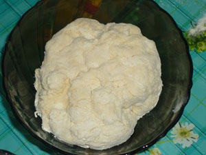 В теплую воду вбиваем яйцо, кладем соль и сахар, перемешиваем. Всыпаем порциями муку и замешиваем тесто.