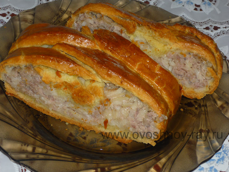 Вас приветствует кулинарный блог Овощной рай! Сегодня я поведаю Вам рецепт исключительно вкусного пирога- плетенки с мясом и картошкой . Помимо чудо- теста и наивкуснейшей начинки этот пирог призван радовать глаз! Ведь он имеет форму популярной плетенки. Такая выпечка, пожалуй, составит сильную конкуренцию таким пирогам, как пирог с горбушей и пирог с рисом и консервой.