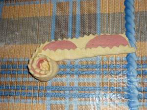 и сворачиваем в форме розочки. Хвостик подгибаем под розу.