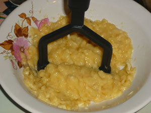 В другой емкости разомнем бананы. Можно сделать это блендером, а можно просто размять картофелемялкой.
