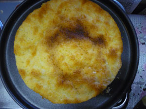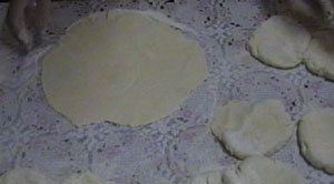 Печем минут 4-5 при температуре 200 градусов. Достаем, снимаем с листа, кладем следующий корж. Когда коржик чуть остынет, кладем на него блюдо дном вверх и, острым ножом, обрезаем по контуру.
