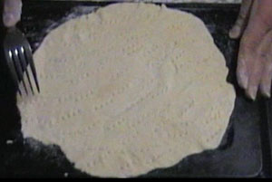 Раскатываем шарики в пласты, ориентируясь по размеру на какое- нибудь блюдо. Корж часто накалываем вилкой, чтобы не было «пузырей».