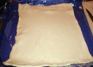 Теперь нужно раскатать тесто (оно у меня покупное), сейчас на столько все легко и доступно, что, мне кажется, не нужно тратить свое время на приготовление слоеного теста, когда можно просто сходить в магазин и купить его. Конечно, есть разница, то ли свое тесто, которое сделано своими руками, то ли покупное, но она не велика, поэтому можно иногда использовать и покупное.