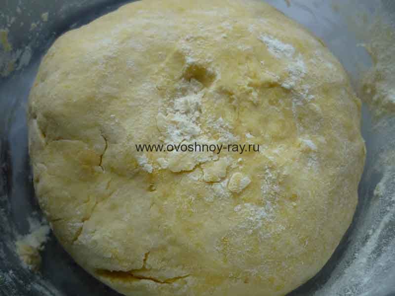 Муку с маслом порубить до комочков, добавить все остальные ингредиенты и замесить тесто. Поставить на холод на 1 час, после разделить тесто на 3 части.