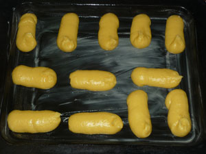 При помощи кондитерского шприца или мешка отсаживаем тесто на противень.