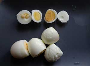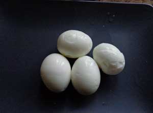 Первым делом отварим яйца, остудим под проточной водой и очень аккуратно очистим их от скорлупы.