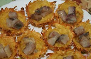 Картофельные корзиночки с салатом и селедкой.